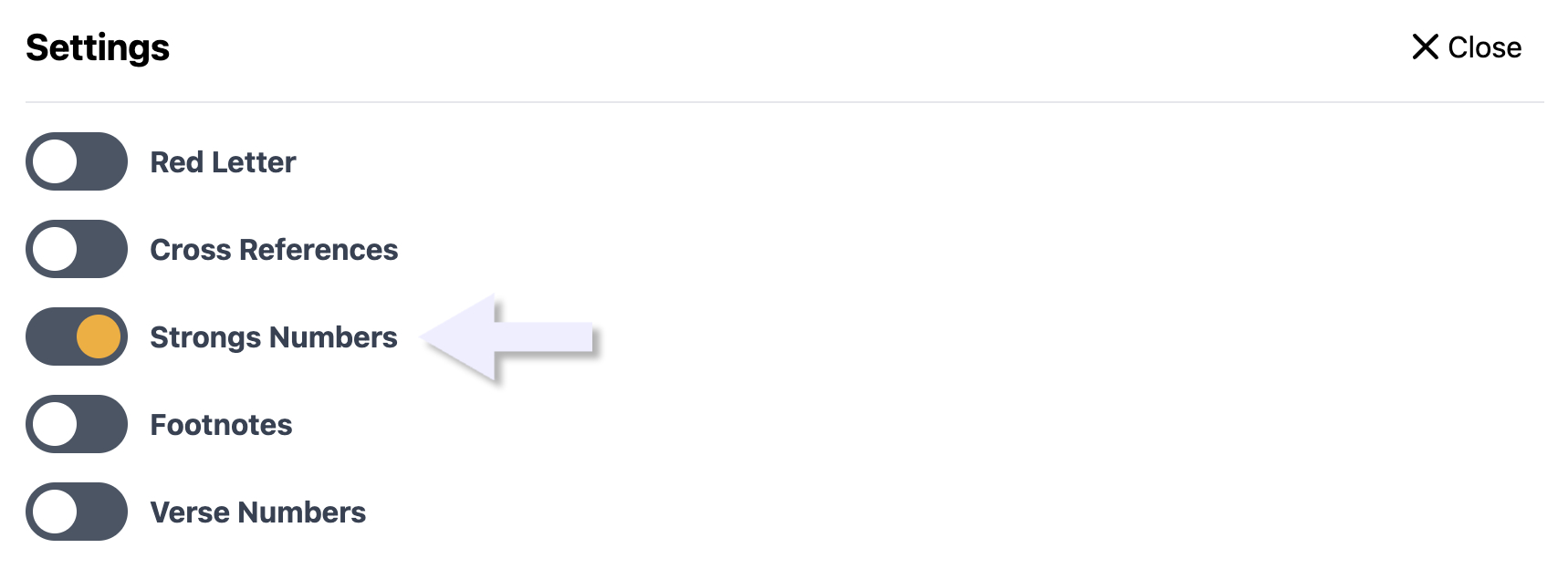 Then, just check the "Strongs Numbers" option. The words linked to the concordance will turn into blue links. Click on those to tap into this powerful tool.